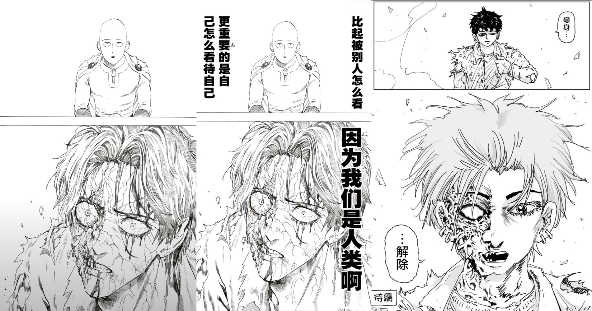 神の留白!!!一拳超人重制版260话,作为甜心假面的名场面,他将解除曾经貌美的假面现出真身,村田在漫画中偶尔的运用留白来烘托假面解除变身在群众面前现出原本样貌的纠结心里。无需多言,没有一句独白一切都画在了绮玉老师无敌的脸上,破碎的假面凝视着真正的英雄,双眼映满着他内心的决绝。你以为村田终于初具人形迈出一大步准备接受网友们万字解读表扬时,他表示:红豆私密马赛,我忘记嵌字了。于是为表示对村田妙手的不满,大家开始在许多经典漫画分镜上嵌字。