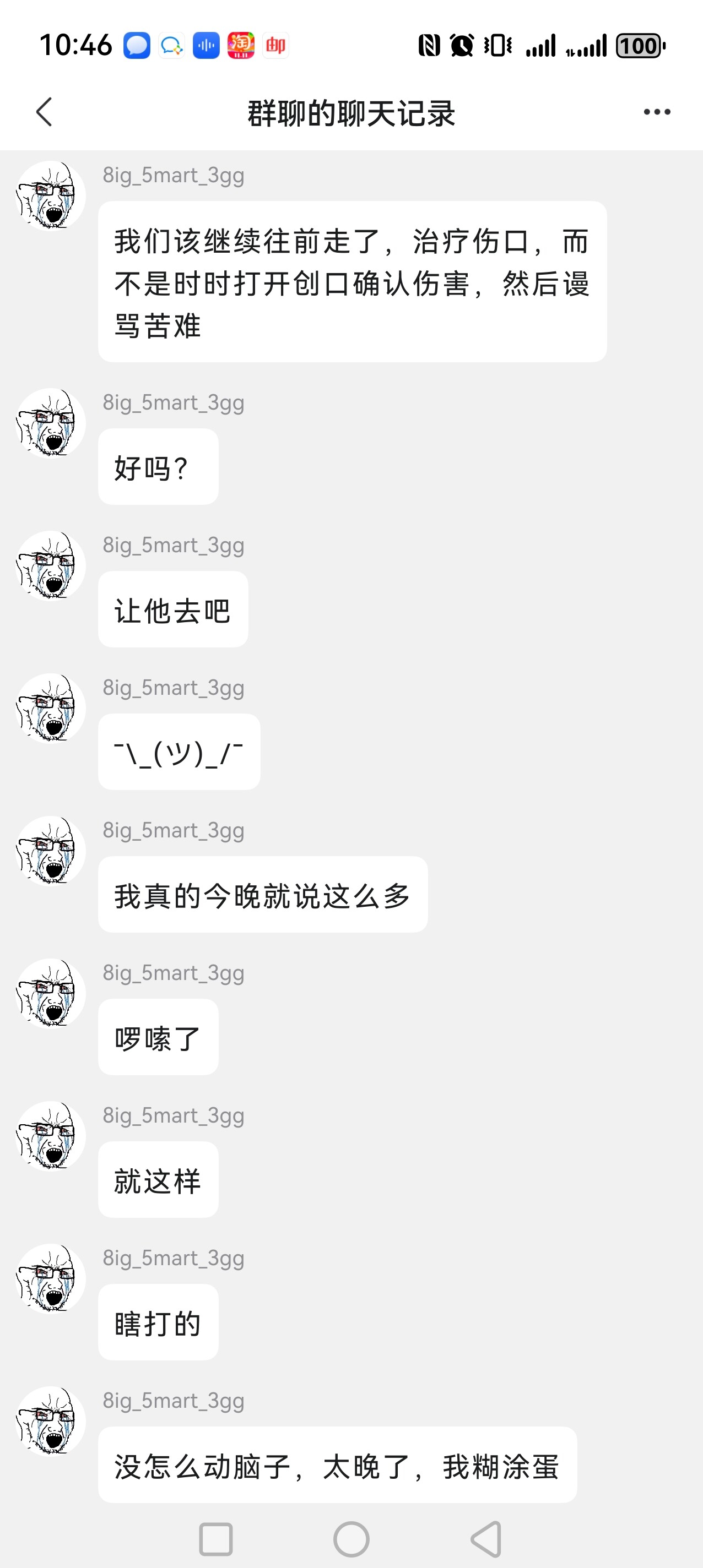 理是这个理,但还有一点不爽,就是你们依旧没有去解决问题。 不过我也待了三年了,你们解决问题的尿性我也知道,是从来不会解决问题。这一点我也该习惯了。