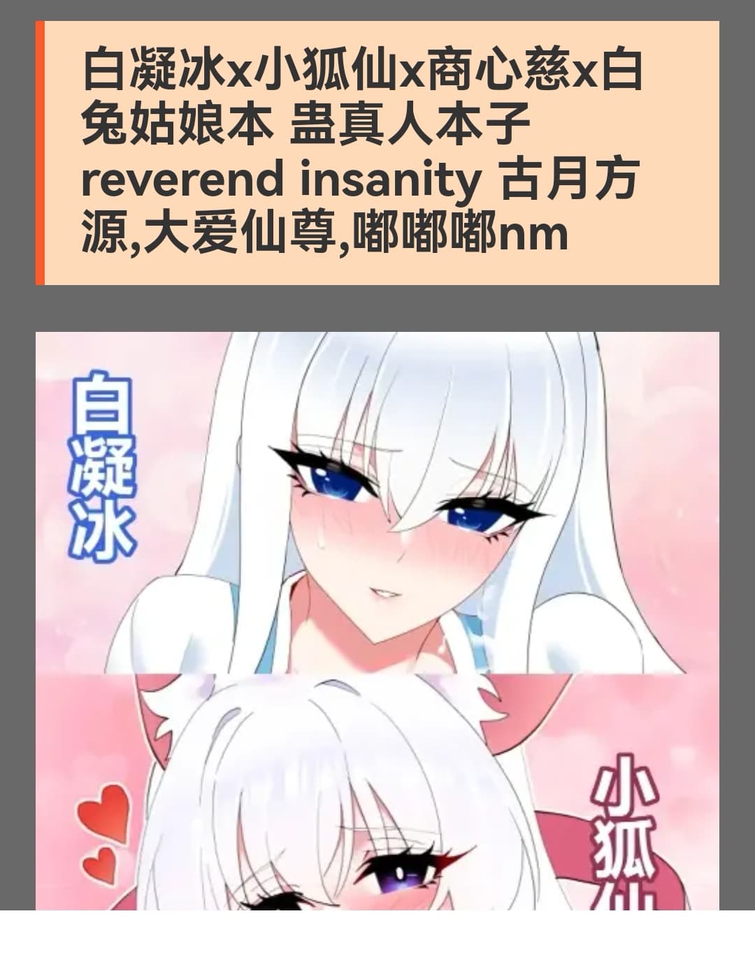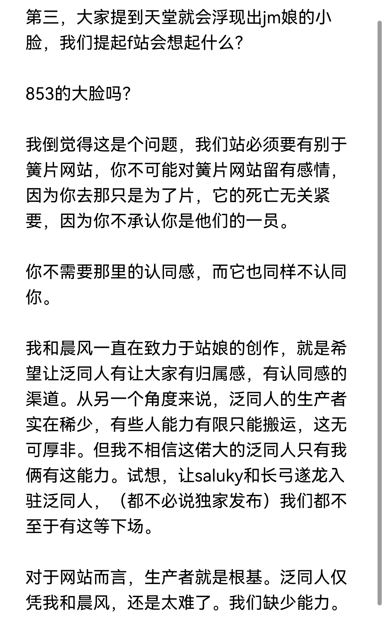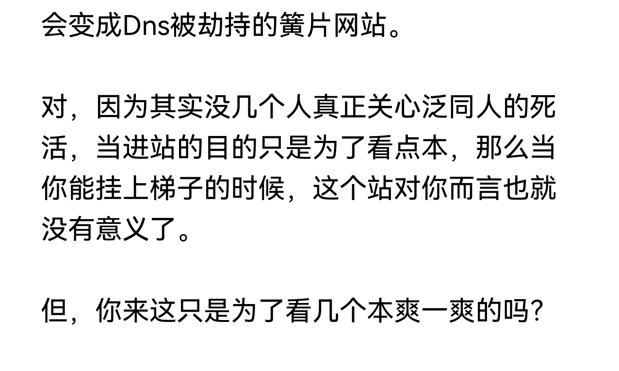 (另:我倒觉得泛同人主要缺画师,别的也干不过画画的。真心话,我写文和搞音乐快十多年了,越搞越觉得这俩玩意是真他妈飞雾,根本干不过画画的——虽然画画的其实也没得到尊重)